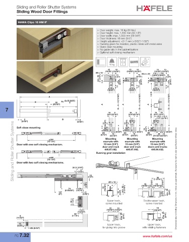 Door with one soft closing mechanism. 19 mm (3/4") 19 mm (3/4") 19 mm (3/4")