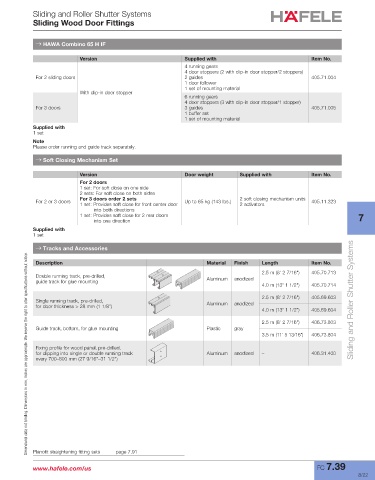 For 2 or 3 doors Up to 65 kg (143 lbs.) 405.11.323