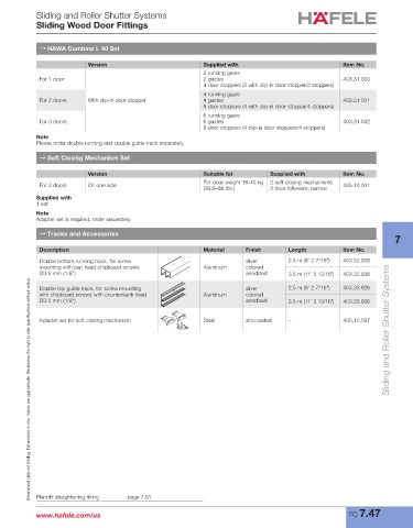 For 2 doors With clip-in door stopper 4 guides 403.31.001