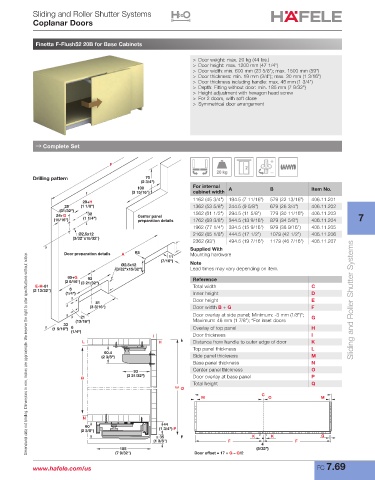 > Depth: Fitting without door: min. 185 mm (7 9/32")