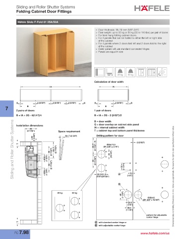 > Door weight: up to 25 kg or 50 kg (55 or 110 lbs.) per pair of doors