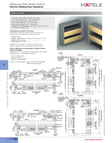+ Weight of sliding door hardware (=0.050 kg or .11 lbs.)