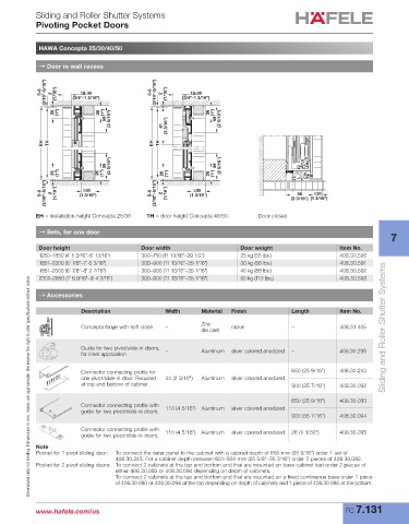 guide for two pivot/slide-in doors. 110 (4 5/16”) Aluminum silver colored anodized 26 (1 1/32") 408.30.095