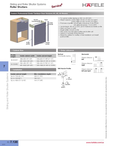 Shutter Panel shutter > Weight capacity: profile height 18 mm (11/16"): 8.5 kg/m²