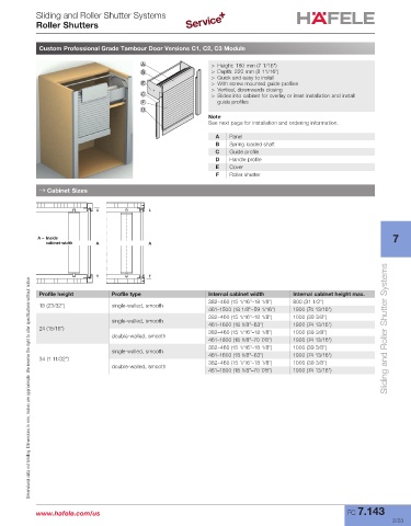 Profile height Profile type Internal cabinet width Internal cabinet height max.