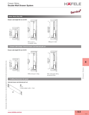 Drawer side height 92 mm (3 5/8") Drawer side height 115 mm (4 1/2")