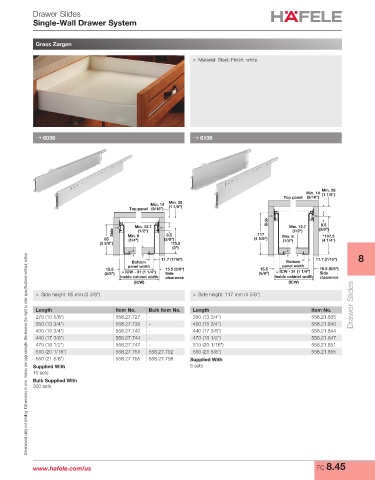 Length Item No. Bulk Item No. Length Item No. Drawer Slides