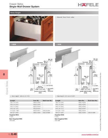 > Side height: 149 mm (5 7/8") (ICW) > Side height: 213 mm (8 3/8") (ICW)