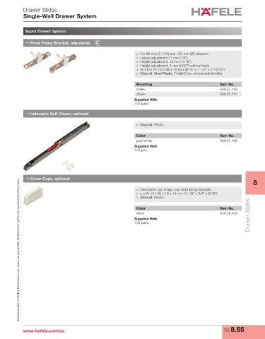 > For 86 mm (3 1/4") and 150 mm (6") drawers