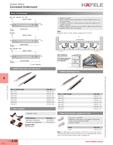 Drawer Slides Box or shelf length Item No. Box or shelf length Item No.