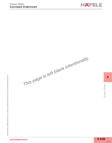 Drawer Slides Concealed Undermount Dimensional data not binding. Dimensions in mm, inches are approximate. We reserve the right to alter specifications without notice. 8 Drawer Slides www.hafele.com/us FC 8.63B 6/22