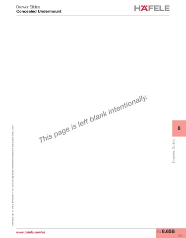 Drawer Slides Concealed Undermount Dimensional data not binding. Dimensions in mm, inches are approximate. We reserve the right to alter specifications without notice. 8 Drawer Slides www.hafele.com/us FC 8.65B 1/22