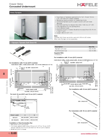drawer material and 210 mm (8 9/32") for 19 mm (3/4") material