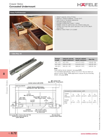 Drawer Slides 24.5 mm (15/16") Elite Plus 19 = ICW - 49 (1 15/16") Elite Plus 19 = 19 mm (3/4")