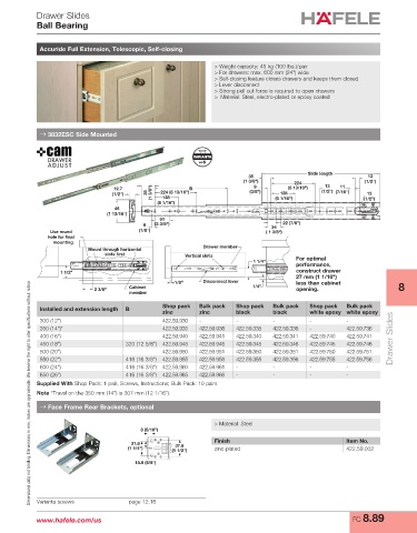 400 (16") 422.59.940 422.59.941 422.59.340 422.59.341 422.59.740 422.59.741 Drawer Slides