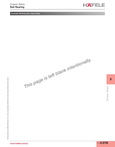Drawer Slides Ball Bearing Accuride Full Extension, Easy Close Dimensional data not binding. Dimensions in mm, inches are approximate. We reserve the right to alter specifications without notice. 8 Drawer Slides www.hafele.com/us FC 8.97B