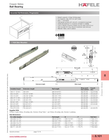 Installed length Extension length Rail length zinc-plated zinc Drawer Slides