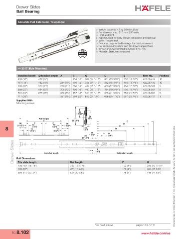Drawer Slides Rail Dimensions Installed length (1/8") Extension length