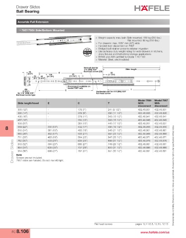 Drawer Slides Note 635 (25") 737 (29") 800 (31 1/2") 432.48.986 432.48.886 Dimensional data not binding. Dimensions in mm, inches are approximate. We reserve the right to alter specifications without notice.