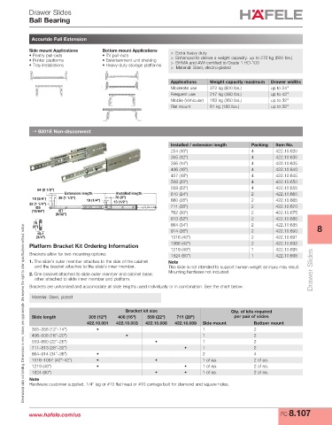 Slide length 305 (12") 406 (16") 559 (22") 711 (28") per pair of slides