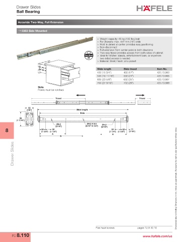 Drawer Slides Dimensional data not binding. Dimensions in mm, inches are approximate. We reserve the right to alter specifications without notice.