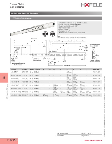 Drawer Slides 500 (19 11/16") 508 (20") 33 kg (73 lbs.) - - 224 - - - 320 - 416 442 224 416 - 448 420.42.050 Dimensional data not binding. Dimensions in mm, inches are approximate. We reserve the right to alter specifications without notice.
