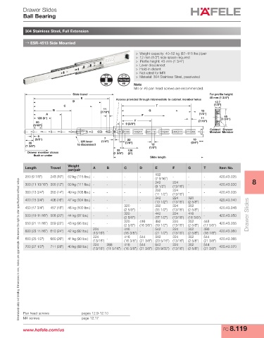 500 (19 11/16") 508 (20") 44 kg (97 lbs.) - - - - 420.43.050 Drawer Slides
