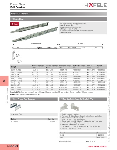 Drawer Slides Supplied With 5 pair per box, each pair polybagged; Cabinet member: 50 pcs. per box; Drawer member: 100 pcs. per box