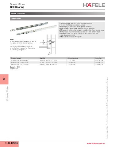 Drawer Slides Dimensional data not binding. Dimensions in mm, inches are approximate. We reserve the right to alter specifications without notice.