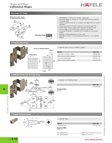 Hinges and Stays (1 3/4") 21 (1/4") (1 3/4") (1 3/4") Dimensional data not binding. Dimensions in mm, inches are approximate. We reserve the right to alter specifications without notice.