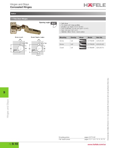 Hinges and Stays Dimensional data not binding. Dimensions in mm, inches are approximate. We reserve the right to alter specifications without notice.