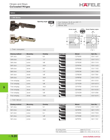 Hinges and Stays > Finish: titanium Mounting Overlay Hinge arm Model Item No. Dimensional data not binding. Dimensions in mm, inches are approximate. We reserve the right to alter specifications without notice.