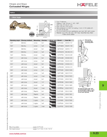 11 > For 9 mm (3/8") lip door application use inset 165º with 3 plate