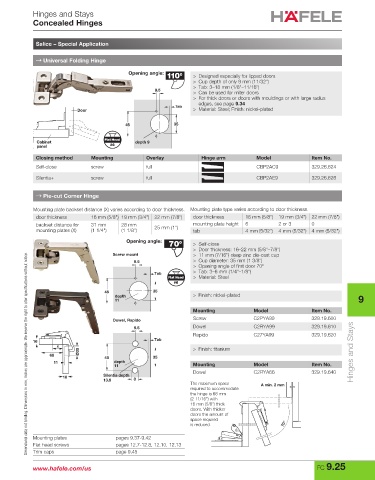 Closing method Mounting Overlay Hinge arm Model Item No.