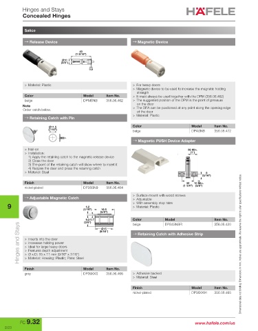 Hinges and Stays > Inserts into the door (9/16") → Retaining Catch with Adhesive Strip Dimensional data not binding. Dimensions in mm, inches are approximate. We reserve the right to alter specifications without notice.