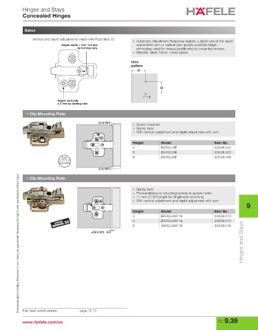 Vertical and depth adjustments made with Pozi drive #2. > Automatic Adjustment Response feature: a slight turn of the depth