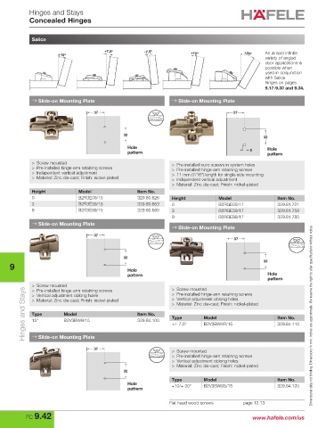 Hinges and Stays > Material: Zinc die-cast; Finish: nickel-plated Item No. > Material: Zinc die-cast; Finish: nickel-plated Item No. Dimensional data not binding. Dimensions in mm, inches are approximate. We reserve the right to alter specifications without notice.