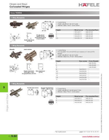 Hinges and Stays Flat Head 0 2 3 348.38.612 348.38.551 Dimensional data not binding. Dimensions in mm, inches are approximate. We reserve the right to alter specifications without notice.