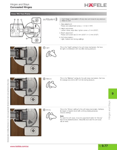 3 2 1 > Each hinge is adjustable to fit any door and close to any pressure
