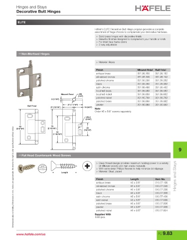 Häfele’s ELITE Decorative Butt Hinge program provides a complete