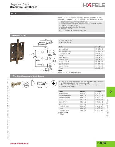 Häfele’s ELITE Decorative Butt Hinge program provides a complete