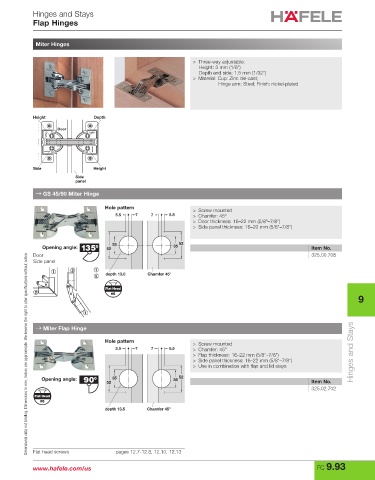 > Flap thickness: 16–22 mm (5/8"–7/8") Hinges and Stays