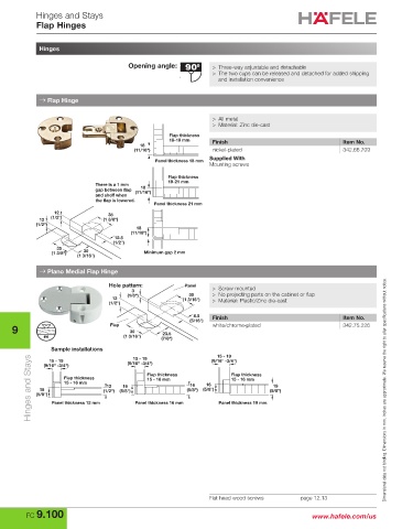 Hinges and Stays (5/8") Panel thickness 12 mm (1/2") (5/8") Panel thickness 16 mm (5/8") (5/8") Panel thickness 19 mm (5/8") Dimensional data not binding. Dimensions in mm, inches are approximate. We reserve the right to alter specifications without notice.