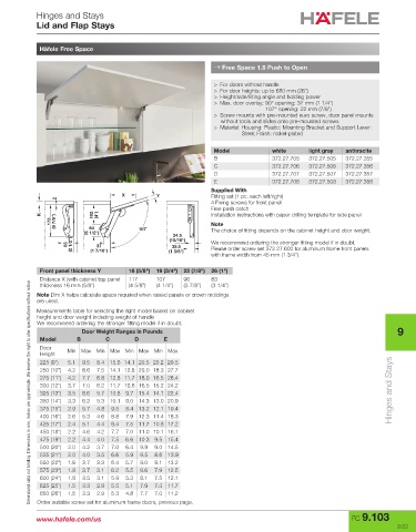 325 (13") 3.5 6.6 5.7 10.8 9.7 15.4 14.1 22.4 Hinges and Stays