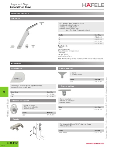 Hinges and Stays > Screw mounted Item No. > Material: Plastic Item No. Dimensional data not binding. Dimensions in mm, inches are approximate. We reserve the right to alter specifications without notice.