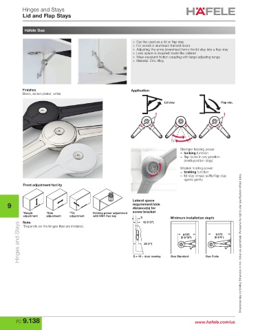 Hinges and Stays S = 12 + door overlay Duo Standard Duo Forte Dimensional data not binding. Dimensions in mm, inches are approximate. We reserve the right to alter specifications without notice.