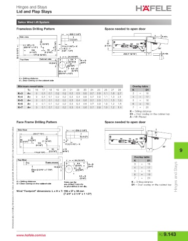 D = Door overlay on the cabinet side pre-drilled 5 mm dia D1 = Door overlay on the cabinet top