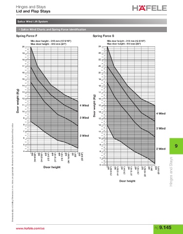 (12 9/32") (14 5/32") (15 3/4") (17 5/16") (18 7/8") (20 15/32") (23 5/8") Hinges and Stays