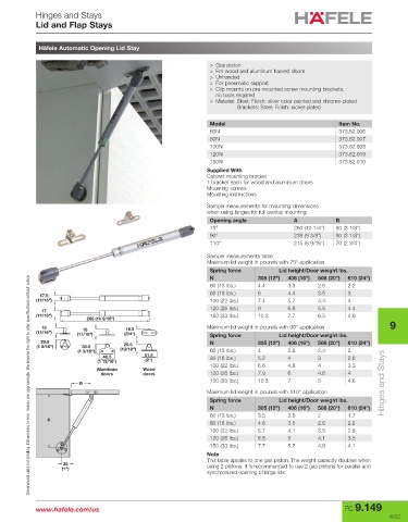 (11/16") (11/16") (3/4") Spring force Lid height/Door weight lbs.