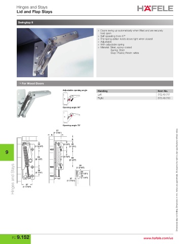 Hinges and Stays (1 7/16") (1 1/4") (1 7/16") 64 Dimensional data not binding. Dimensions in mm, inches are approximate. We reserve the right to alter specifications without notice.
